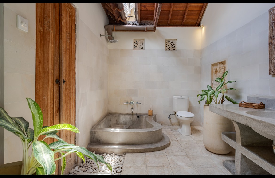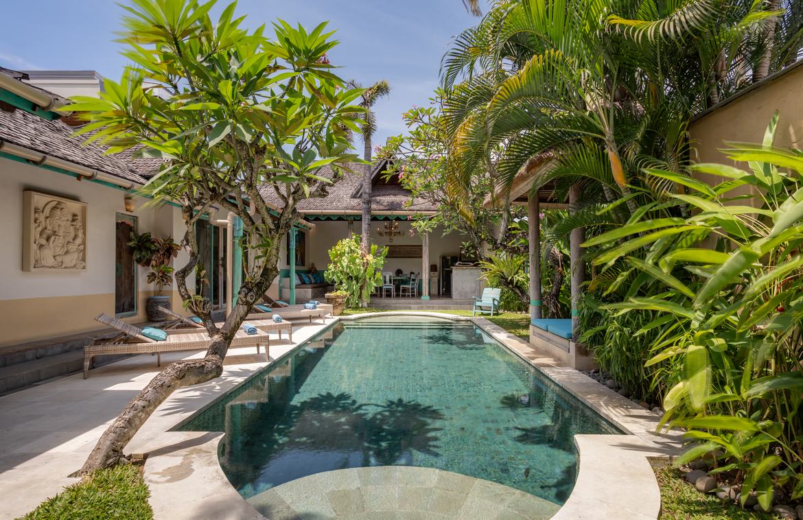 Situated in a quiet residential area of Seminyak, this refined three-bedroom, three-bathroom villa is set on 301 sqm of land and offered fully furnished with a secure leasehold valid until October 2053, complete with a Pondok Wisata license. The villa is designed around a 12.5-metre private swimming pool, with open-plan living and dining areas extending seamlessly to the outdoor terrace, creating a balanced indoor-outdoor living environment. Each bedroom features an en-suite bathroom, complemented by natural finishes and subtle Balinese architectural elements that lend warmth and character throughout. Surrounded by tropical landscaping and within easy reach of Seminyak’s beaches, dining, and lifestyle amenities, the property offers a well-considered blend of privacy, functionality, and location.