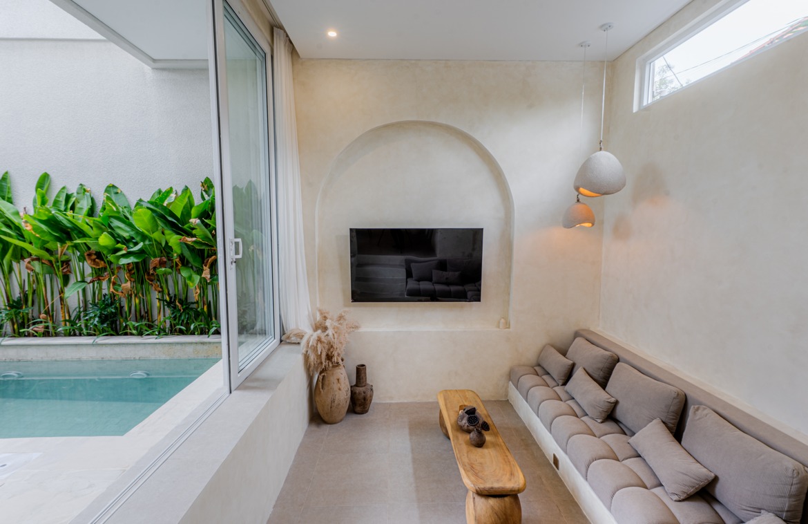 Located in the vibrant Batu Bolong area—famed for its lively cafés, boutique shops, and world-class surf beach—this modern 2-bedroom villa blends contemporary design with Mediterranean flair, making it both stunning and highly photogenic.