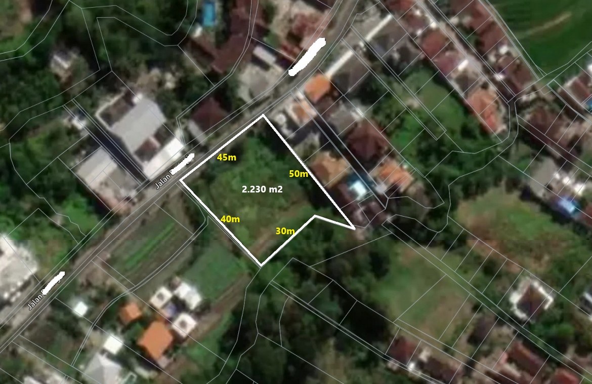 This 2,230 sqm plot is located in the peaceful village of Padonan, just 7 km from Berawa Beach. Set along a 7-meter-wide asphalt road, it offers both convenient access and a quiet environment. With a generous 45-meter street frontage and 40-meter depth, the land gently slopes to the east.