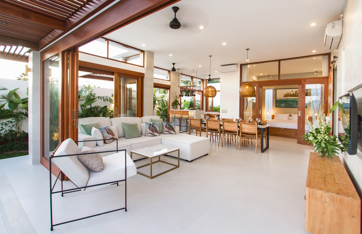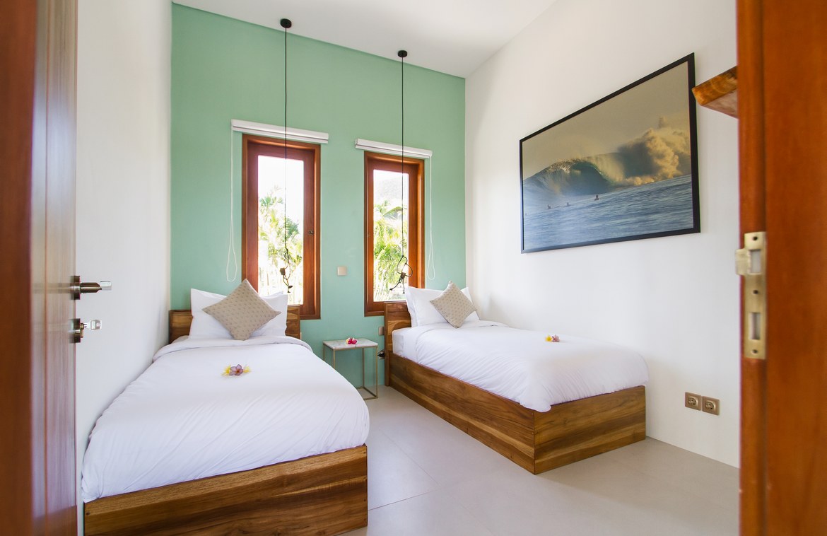 Just 50 metres from the beach in Cemagi, this beautifully designed villa enjoys a peaceful setting with rice field and ocean views from the upper floor, offering the perfect balance between coastal living and tropical tranquillity.