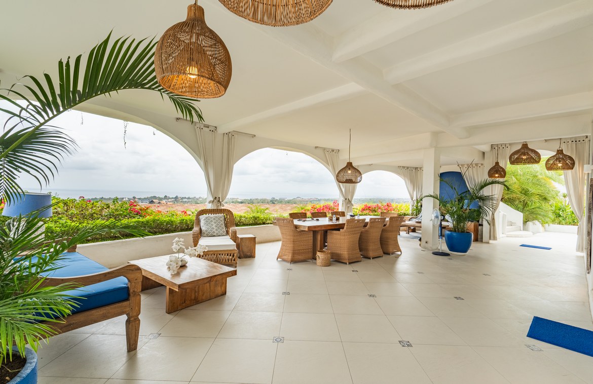 Spread across 1,737 sqm of freehold land, this estate has been crafted with meticulous attention to detail, making it one of the most sought-after villas on the island. At its heart lies a spacious living and dining area—the social hub of the home—that seamlessly extends to an expansive terrace with a lounge and dining table, offering spectacular views of the landscaped surroundings and the ocean beyond.