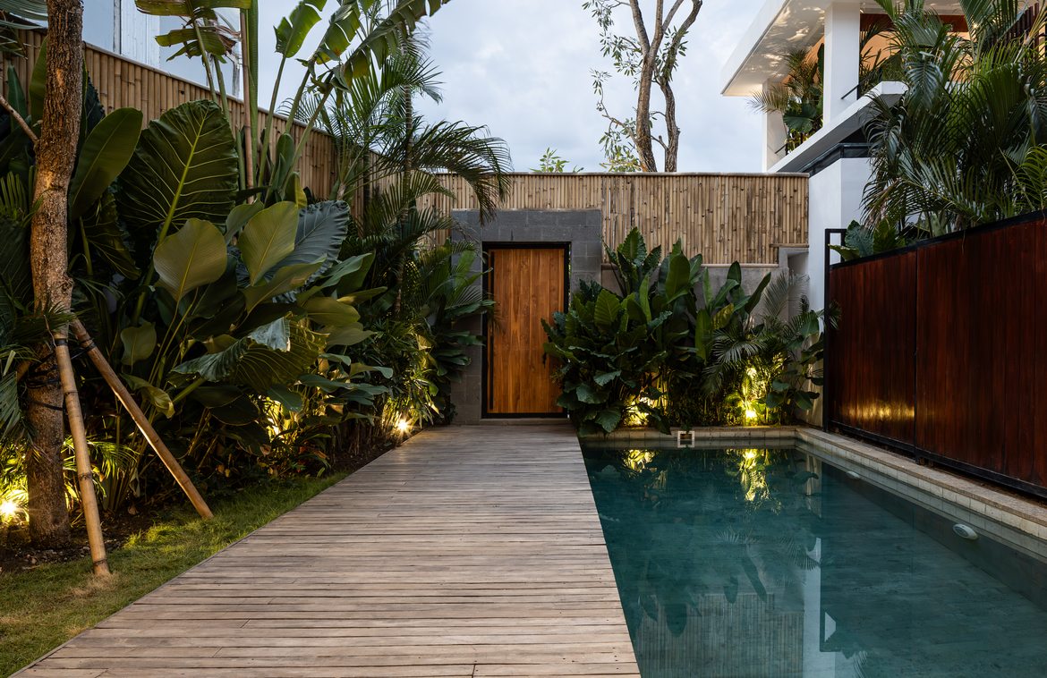Occupying 219 sqm of land, the villa features two well-appointed levels facing a sparkling 8 x 3 m swimming pool surrounded by a timber deck and lush tropical greenery — your own private sanctuary.