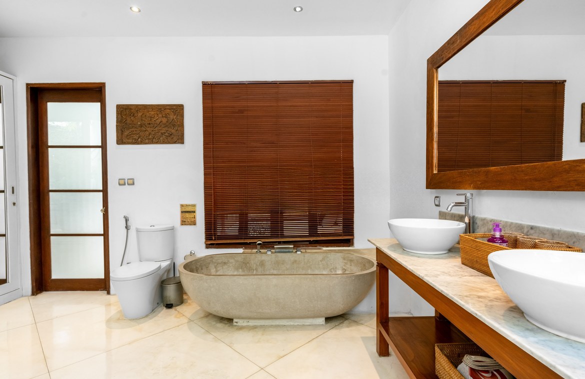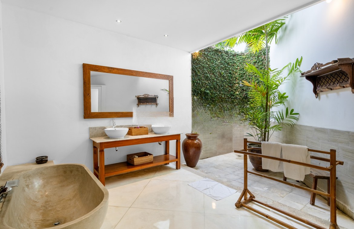 Thoughtfully designed open spaces allow abundant natural light to flow throughout the villa, enhancing the sense of comfort and connection with the outdoors. Each bedroom is generously sized, while the bathrooms are fitted with bathtubs and designed in a semi-open tropical style, complemented by lush greenery.