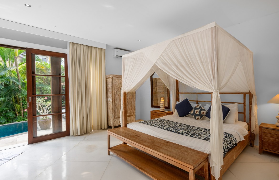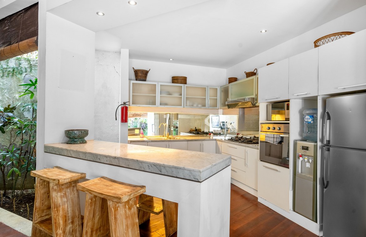 Part of an exclusive boutique complex of just four villas, this architecturally distinctive property is ideally located in the sought-after area of Umalas, within walking distance to the popular dining spots of Umalas and only a short drive to both Petitenget and Berawa.