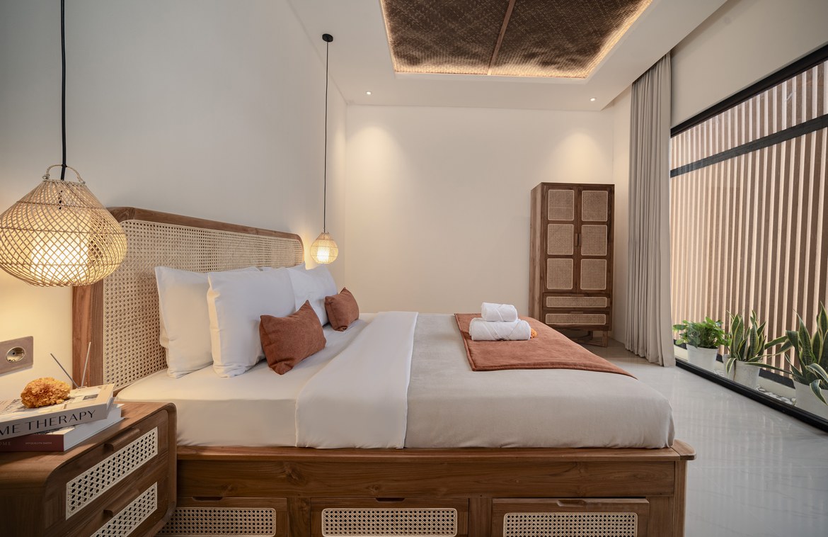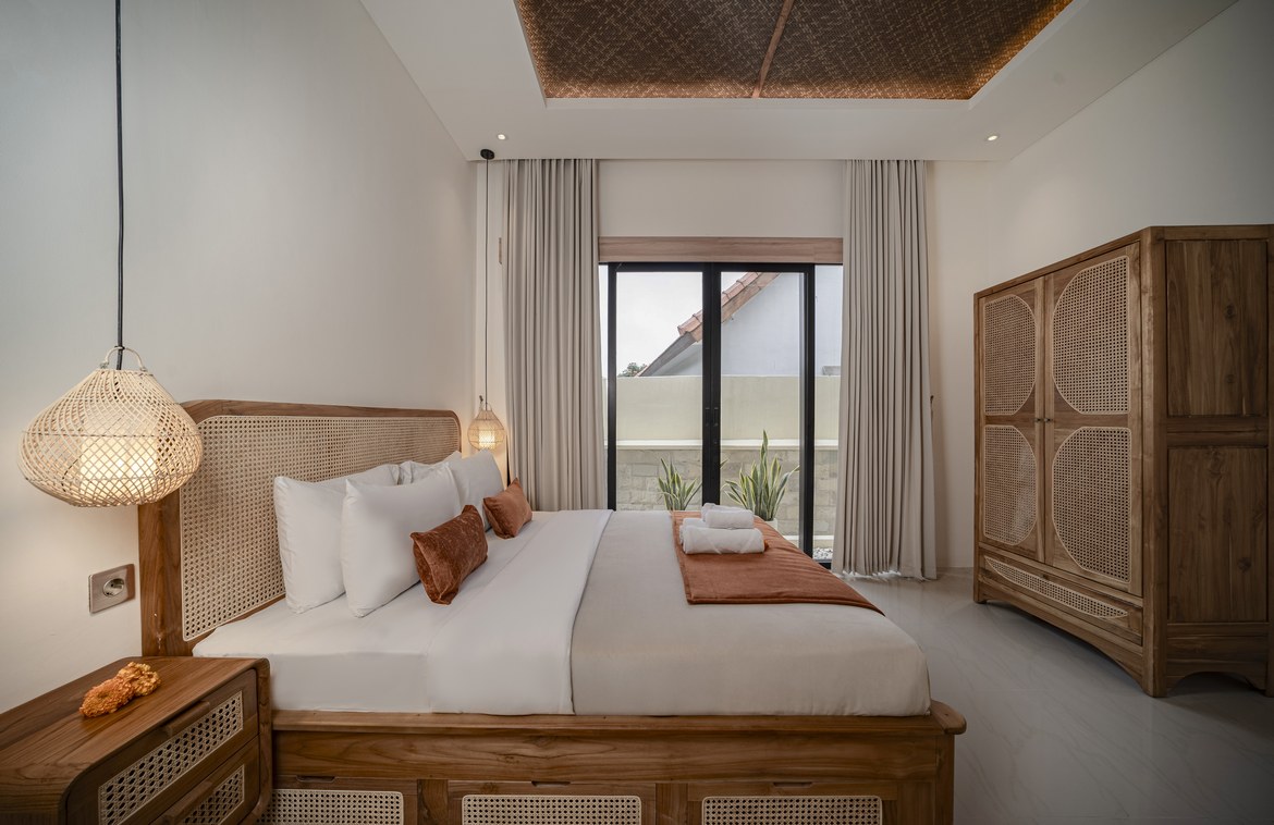 Nestled down a serene private lane in Tumbak Bayuh, this charming two-bedroom villa offers a tranquil retreat just 4 km from Pererenan Beach and the vibrant attractions of Canggu.