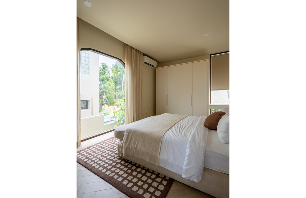 Designed with a sophisticated modern aesthetic, the interiors feature a soft neutral palette, premium finishes, and an abundance of natural light, creating a luxurious yet welcoming atmosphere throughout. The villa offers four beautifully appointed bedrooms, each individually designed to provide privacy, comfort, and a refined sense of style.