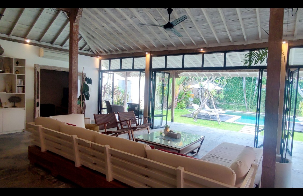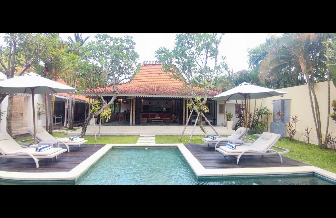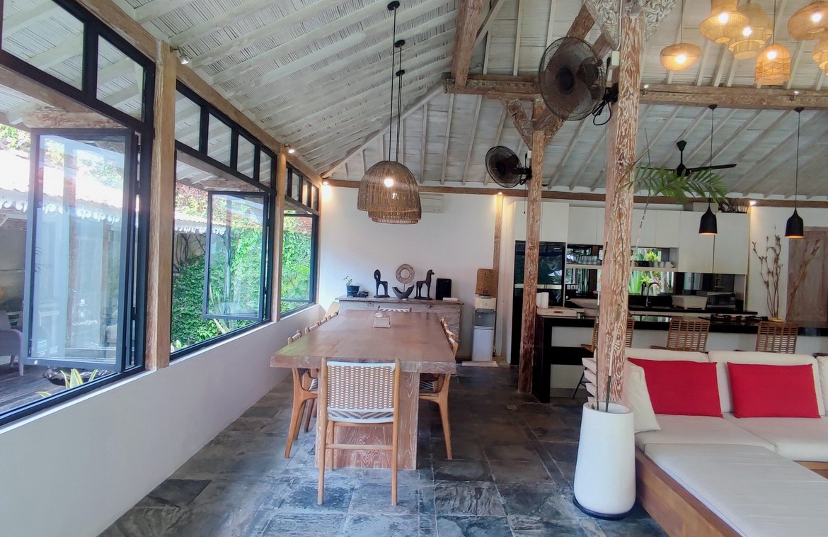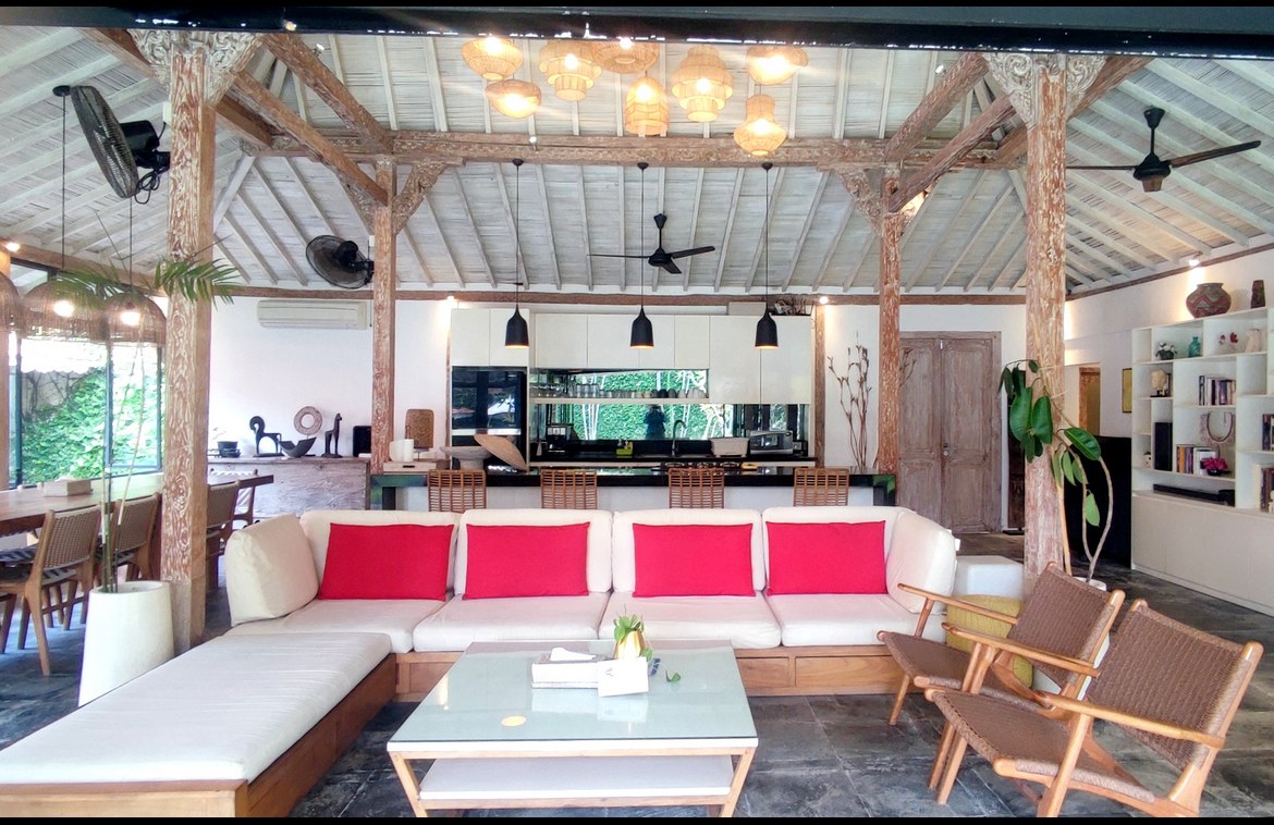Experience a refined Javanese sanctuary where timeless heritage architecture meets modern living, just 1.5 km from Berawa Beach. Nestled in a peaceful neighborhood, yet within easy reach of popular shops and restaurants, this distinctive villa captures the elegance of traditional design through beautifully crafted Joglo pavilions. The layout is thoughtfully composed, with each pavilion connected by lush tropical gardens and centered around an inviting swimming pool.
