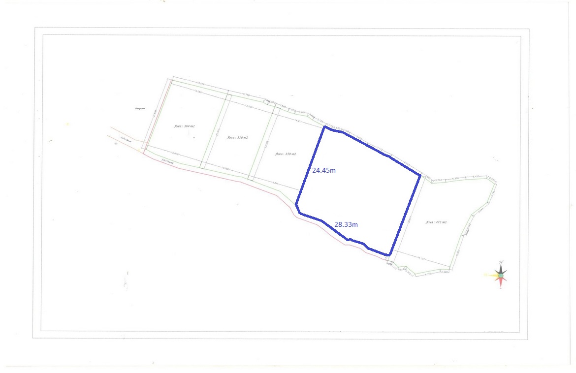 With its ideal rectangular shape—featuring approximately 30 meters of street frontage and 24 meters in depth—the land is perfectly suited for building a grand private estate or for subdivision into up to three plots, making it an excellent option for a small villa complex with strong rental potential.
