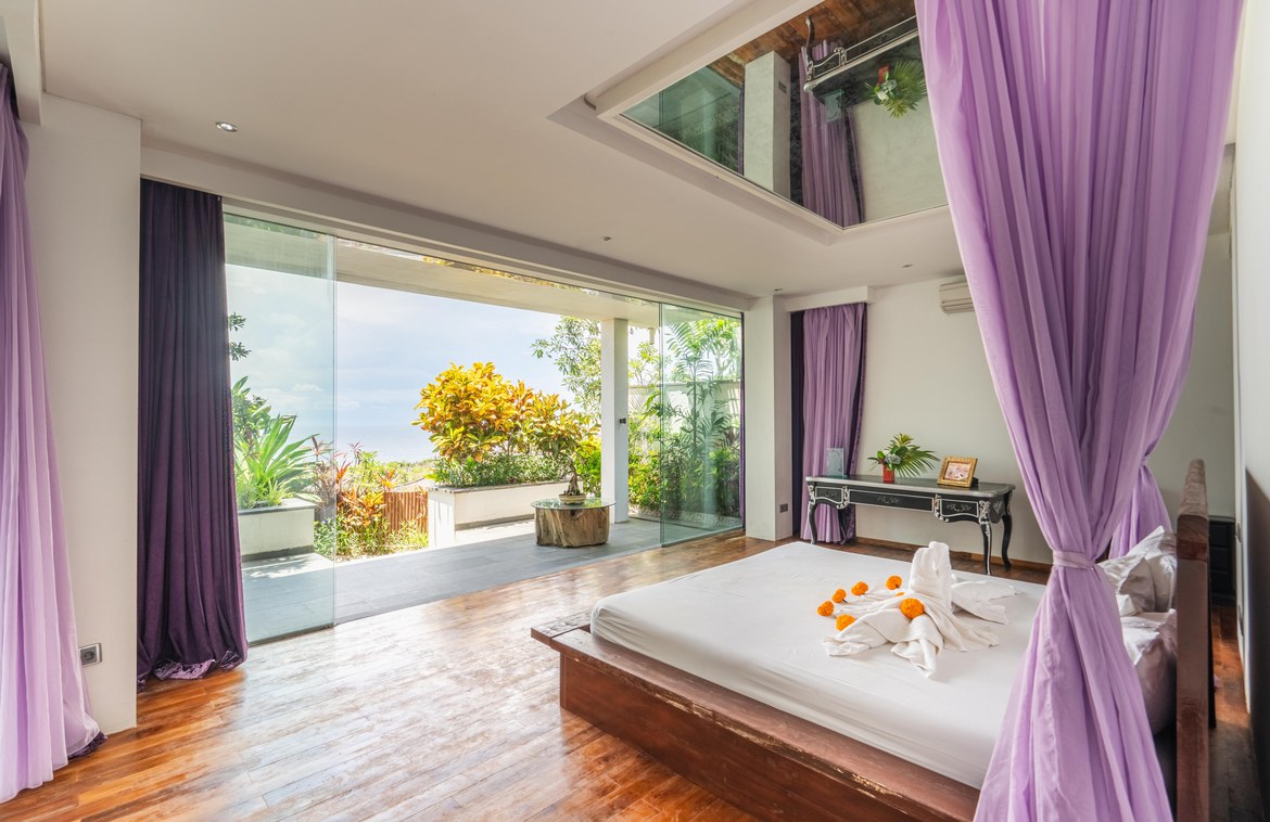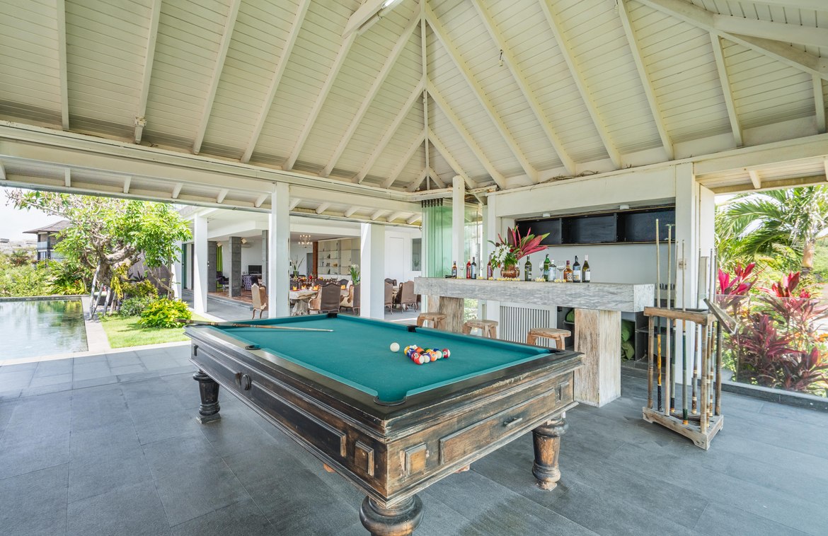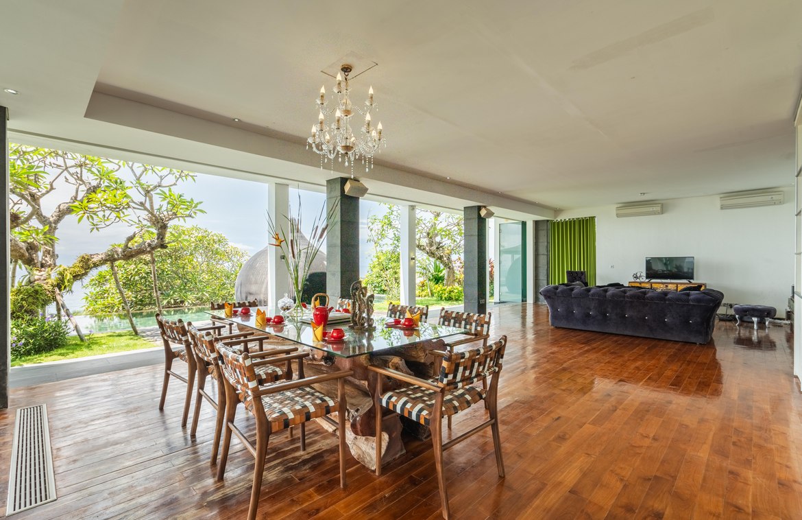 This exquisitely designed villa is nestled within a gated estate on the Bukit Peninsula, mere moments from the pristine Pandawa Beach in South Bali. Encompassing over 1,410 square meters of cliffside land, the villa boasts breathtaking ocean views.