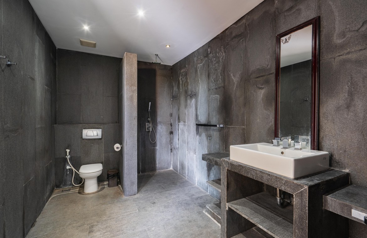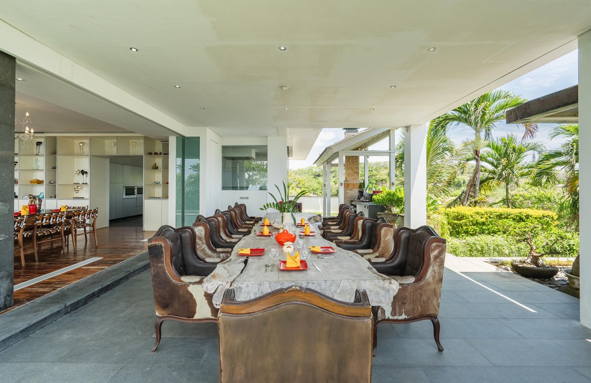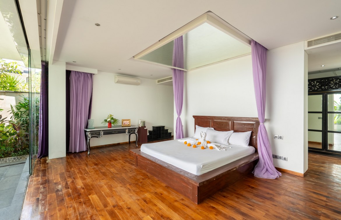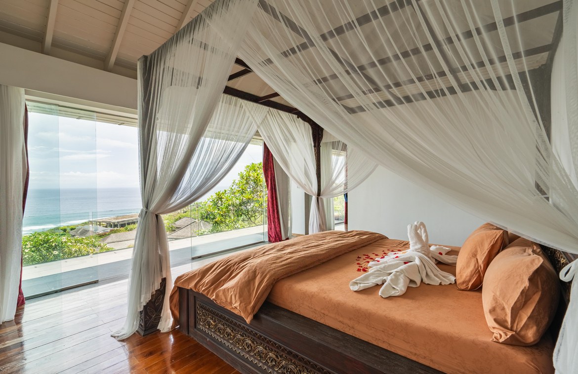 This exquisitely designed villa is nestled within a gated estate on the Bukit Peninsula, mere moments from the pristine Pandawa Beach in South Bali. Encompassing over 1,410 square meters of cliffside land, the villa boasts breathtaking ocean views.