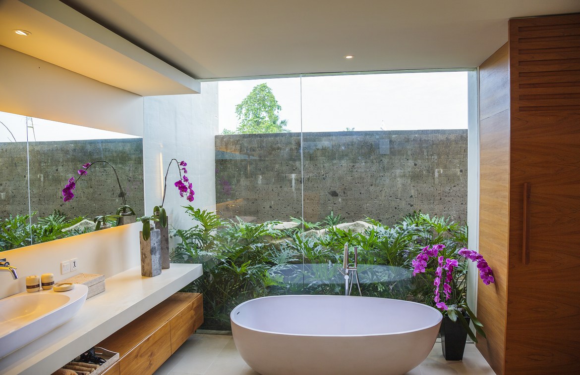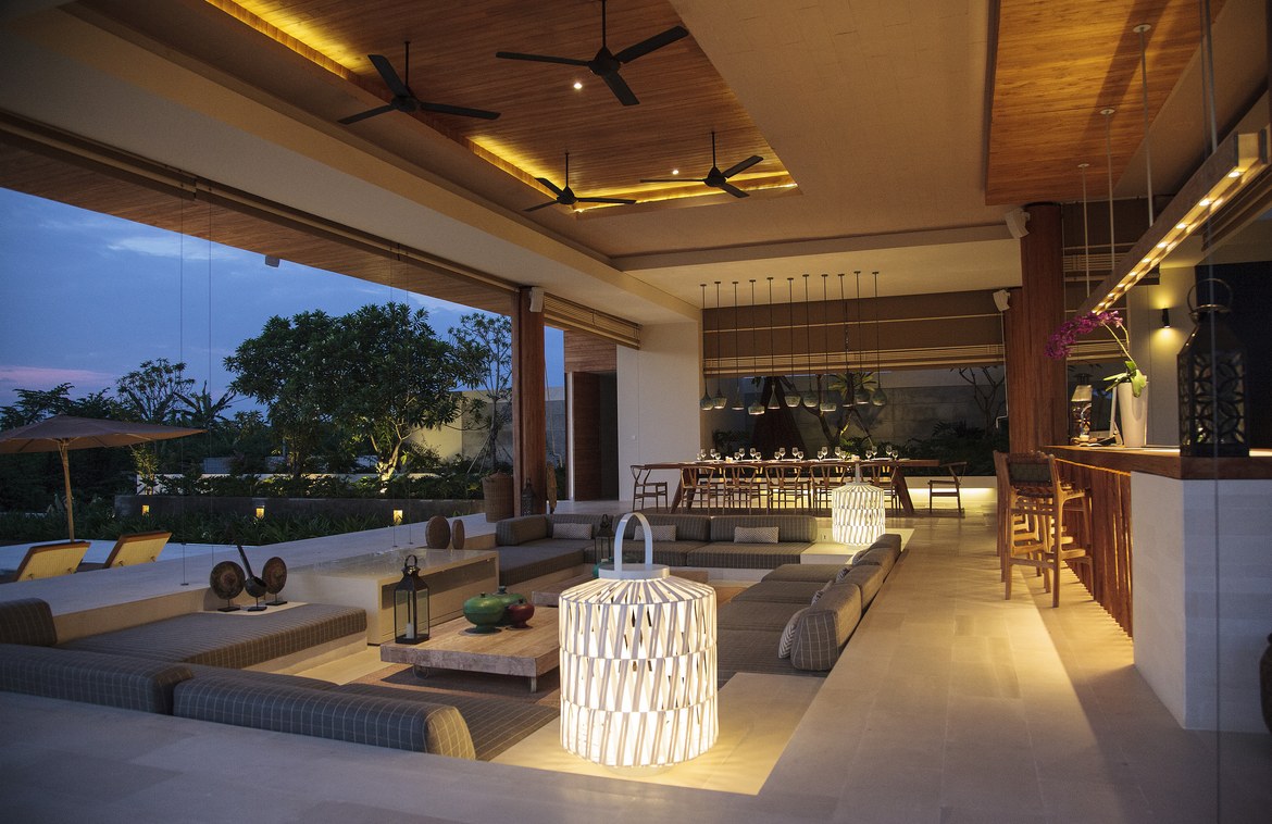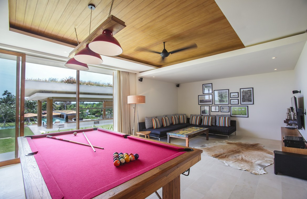 Built on gently sloping terraces that mirror the neighboring rice fields, the villa sits on 2,600 sqm of freehold land. Entry is through the striking double-storey main building from a private parking area. The top floor features two beautifully appointed bedrooms opening onto a landscaped rooftop terrace with a large sunken Jacuzzi and honey-toned sundeck. A third bedroom is located on the ground floor beside the exceptionally well-equipped entertainment room.