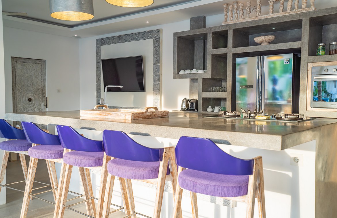 Surrounded by lush tropical gardens, the outdoor area is centered around a spectacular 17-meter infinity-edge swimming pool, complete with submerged sunbeds, whirlpool area, and a poolside gazebo—perfect for relaxing or entertaining.