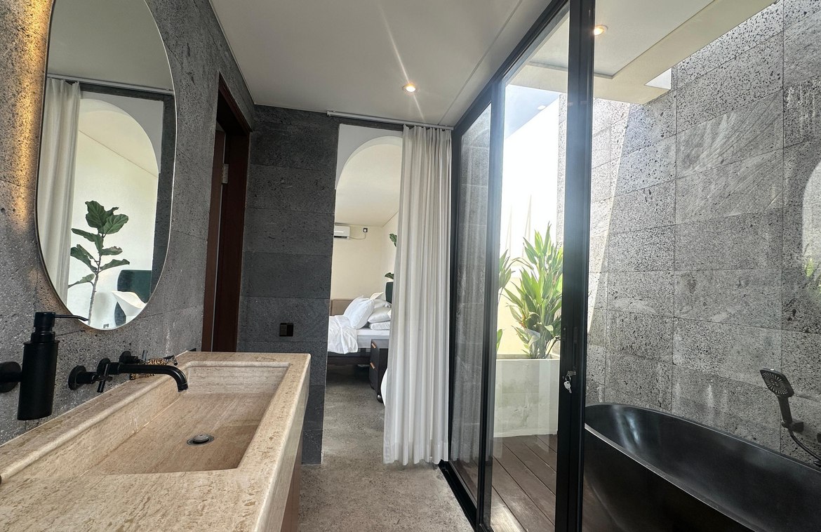 This beautifully designed villa offers a seamless blend of style and functionality, all under one roof yet with a generous sense of space — boasting 215 sqm of living area on a 250 sqm plot, though the actual land size is 295 sqm, giving it an even more generous feel. Tucked just 100 meters from Bumbak’s main street, it provides peaceful living while being steps away from an array of cafes, restaurants, and shops. Berawa and Petitenget are also easily accessible from this prime location.