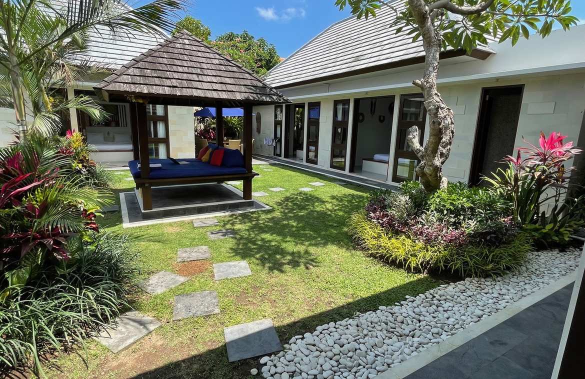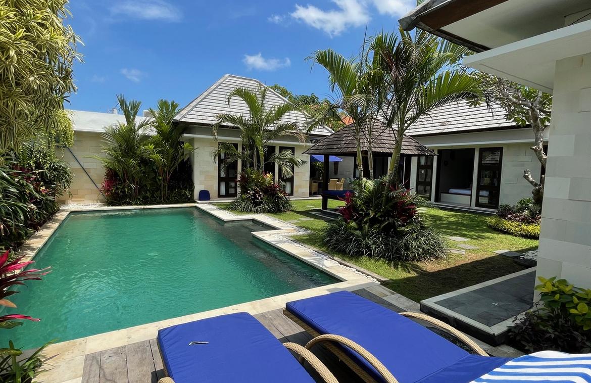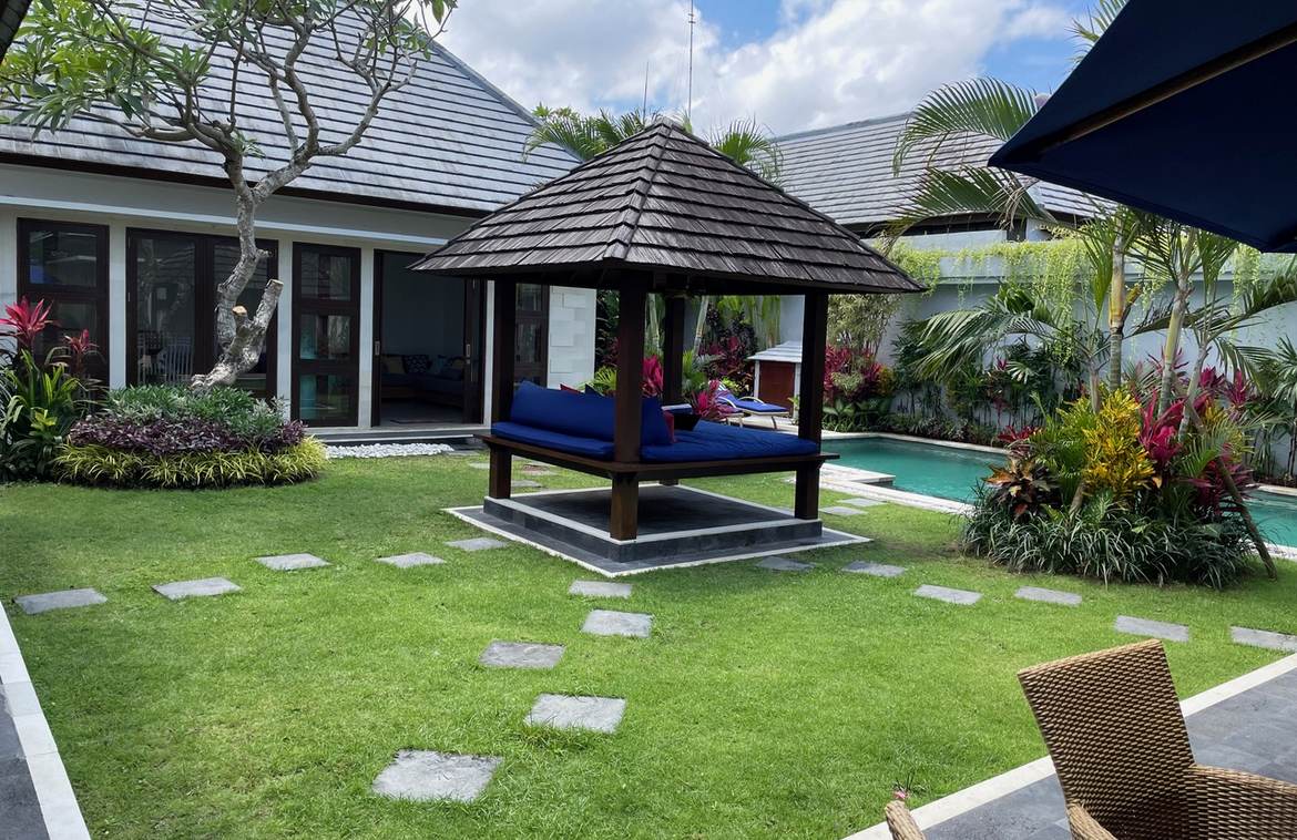 Nestled in a quiet yet highly strategic pocket of Seminyak, just 500 meters from Sunset Road, this stylish four-bedroom villa blends modern comfort with tropical charm. Its prime central location ensures effortless access to Denpasar, Sanur, and Ngurah Rai Airport, while the vibrant beaches of Petitenget and Seminyak are only a 10-minute drive away.